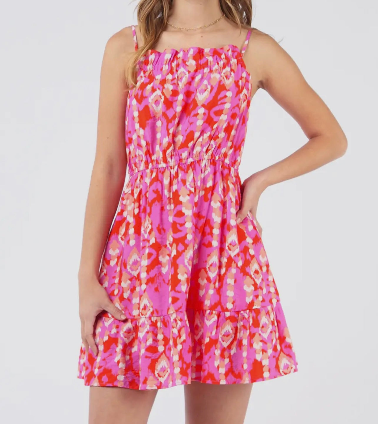 Pink Printed Mini Dress